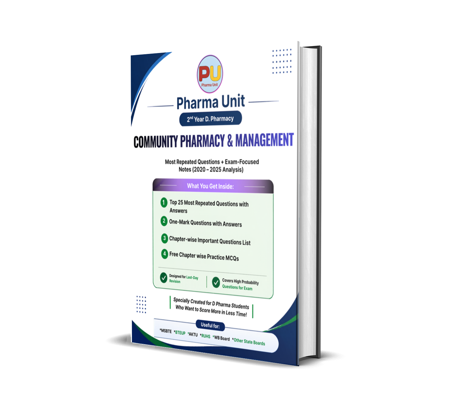 This PDF is prepared for D. Pharmacy students to help with exam revision in a simple and structured way for your Community Pharmacy and Management exam